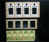 2、經(jīng)過單座模切機(jī)(加裝五金模具),沖左右兩側(cè)的中分虛線,防塵網(wǎng)內(nèi)框以及左右兩側(cè)的定位孔(共四列)。